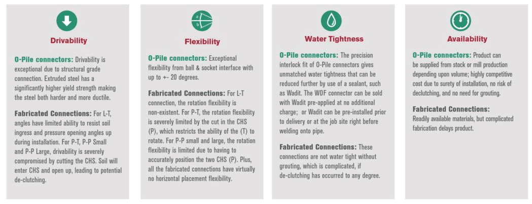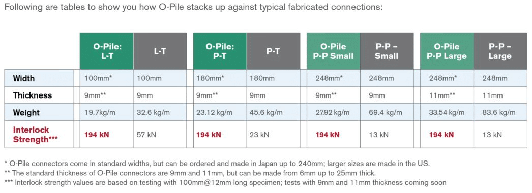 O-Piles provides a much stronger wall system as compared to Steel Sheet Piles, with its capability of providing section modulus effectively from 10,000 to beyond 20,000 cm3/m. The interlocks which is the hallmark of the O-Pile solution is able to provide 3x stronger interlock strength during driving installation and prevents declutching as compared to regular P-T, L-T and P-P interlocks.