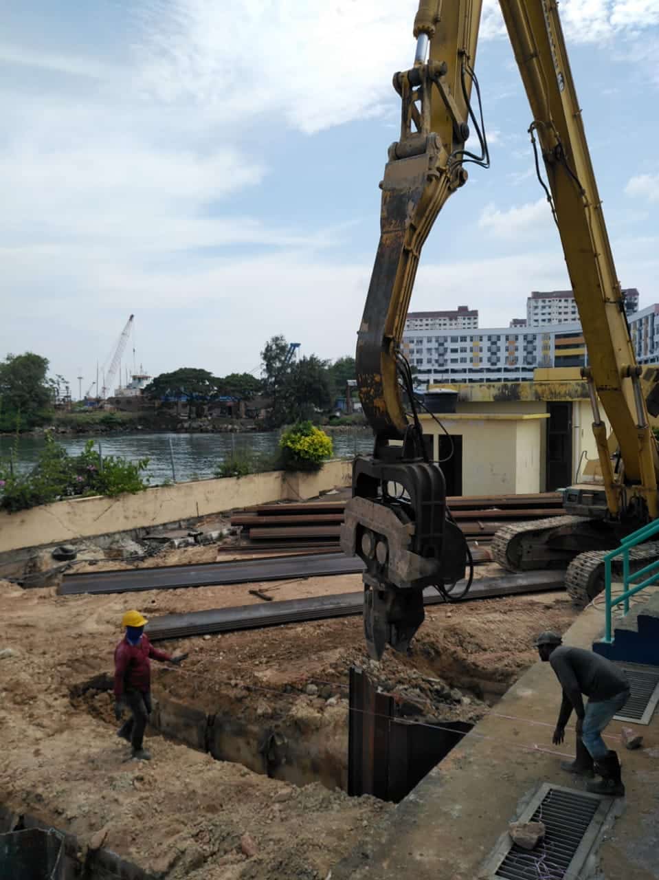 These walls will segregate each line of box culvert outlets, allowing them to be worked on individually without affecting the others. MHZ Sheet Piles boast a superior strength-to-weight ratio and are lighter than rival sheet piles. Making them the ideal choice for this project. Mlion worked closely with the JPS team in the Penang Island district and proposed the above-mentioned solution. The sheet piling work started on 14th Sept and was completed on 27th Sept.